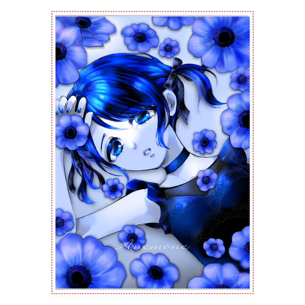 ブルーアネモネと女の子のクリアファイルです。 あなたを待っています。